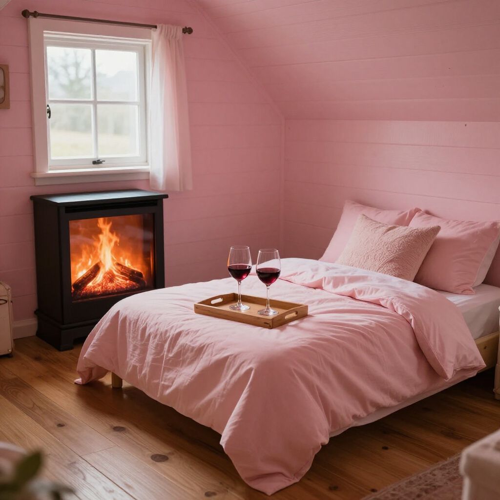 Binnen vind je een elektrische openhaard, een regendouche en een volledig uitgeruste keuken. Bij aankomst staat er een gratis flesje wijn klaar met twee wijnglazen op het bed voor een romantische start.
